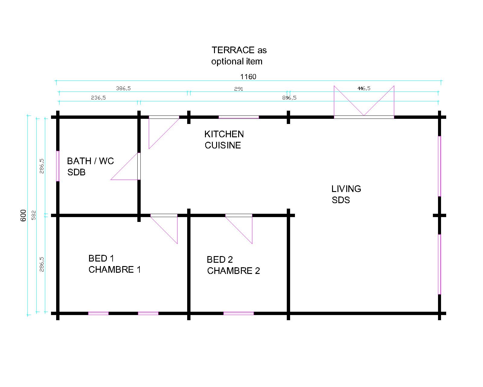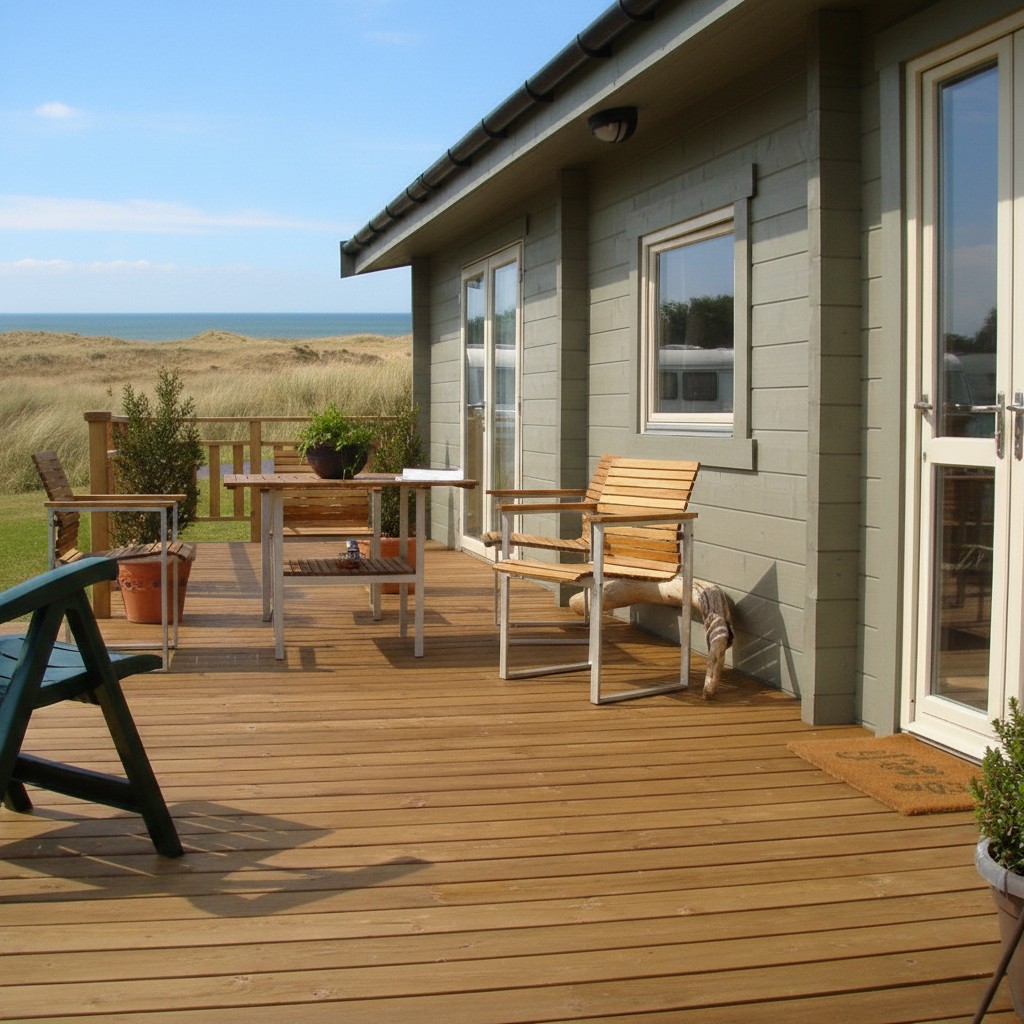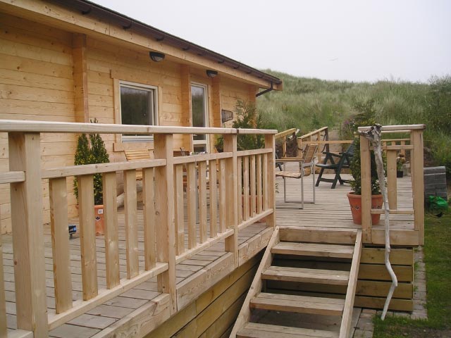 We created a holiday home in the dunes with a terrace and a private path to the beach. You can rent this building in the North East of UK and get a feeling for how great it is to live in a log home. Designed to suite the British caravan act.